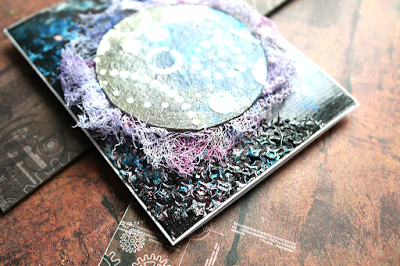 Здесь у меня и луны и целые созвездия, и звездная пыль -  бумага и штампы от Артелье, коллекция GEOметрия