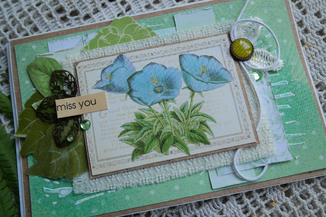 В работе использовала бумагу от Bee Shabby, вырубку и тканевый цветочек.