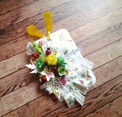Тема, естественно, школьная - гладиолусы, ручки-карандаши и мудрая сова :) Бумага и высечки от Polka Dots.