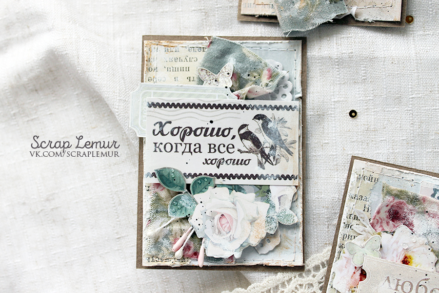 помогли мне в этом клеточки - тычинки, цветы, а также отдельно использовала еще ткань, кисточку, вырубку, чипборд и вырезалки. Попрыгала сразу на пяти клеточках и остановилась передохнуть)
